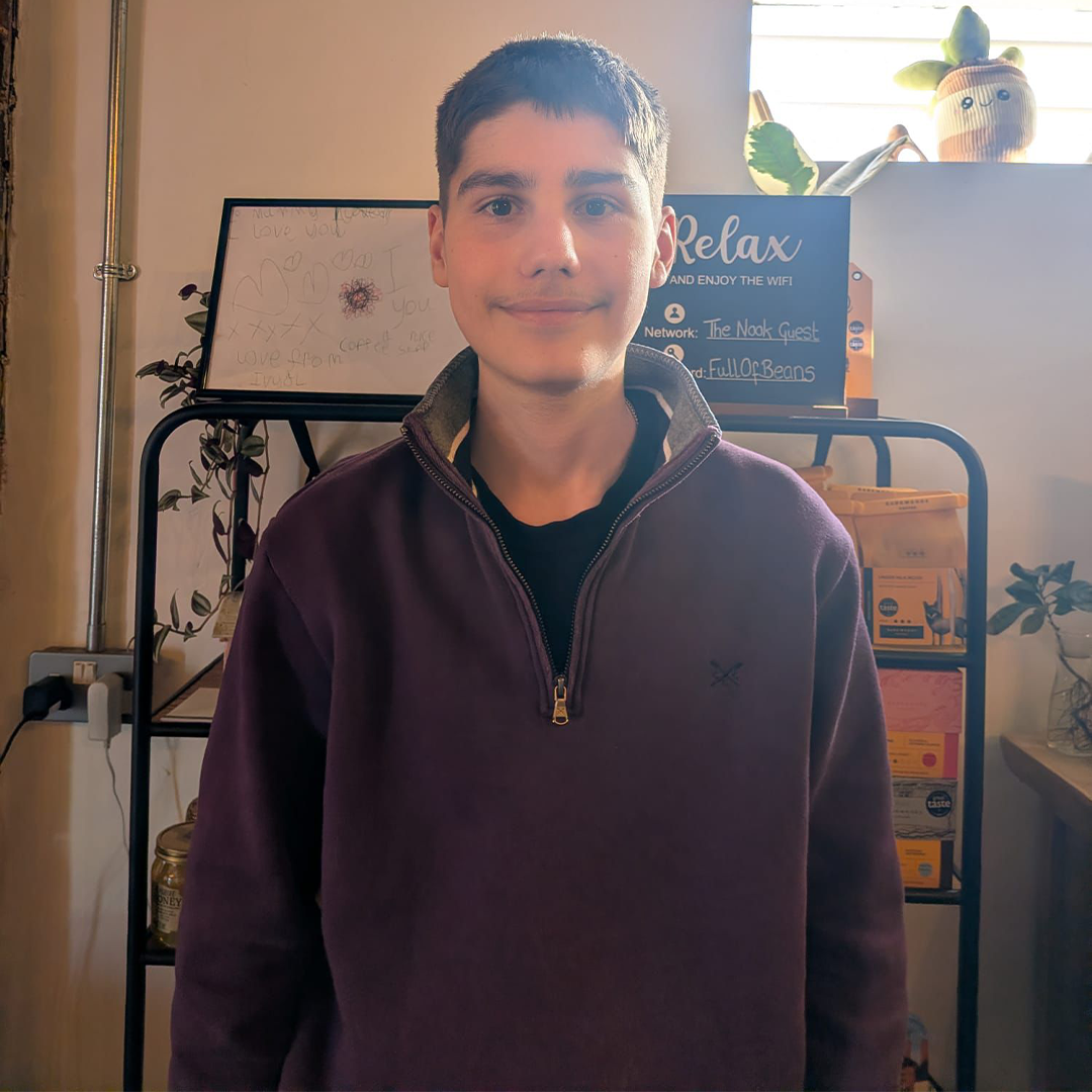 Cyrus is about to start college on a cookery course. His passion for food and coffee make him perfect for working at The Nook. When he is not daydreaming about cars, you can find him cooking up a storm in his kitchen.